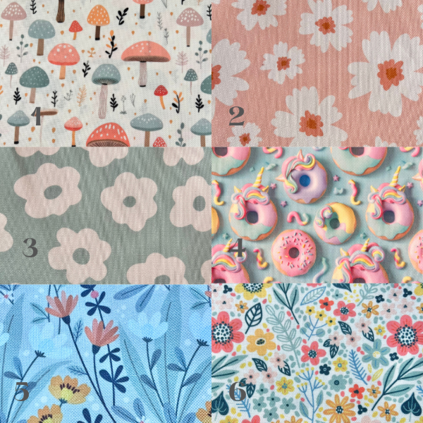 Hay varios estampados para elegir (1 al 6) numerados en la ultima foto.