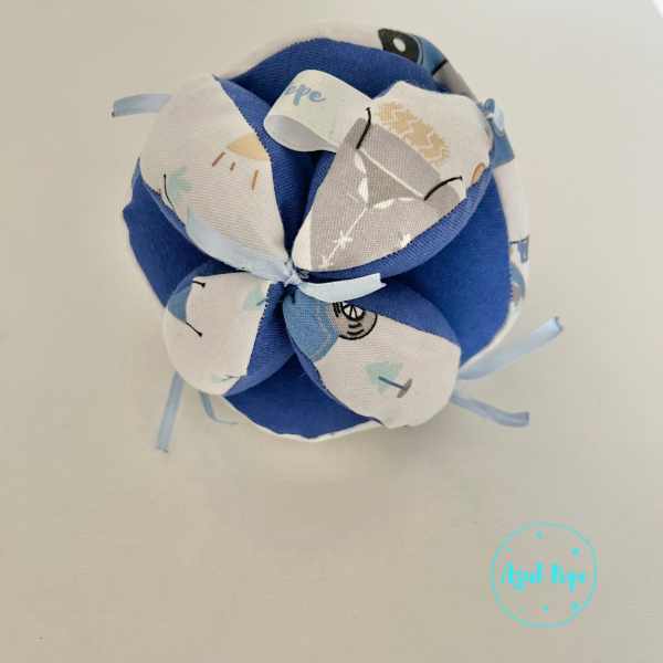 *Pelota montessori con gajos o hendiduras para que los más pequeños la puedan agarrar fácilmente. Rellena de vellón siliconado y con un cascabel en su interior. Puede utilizarse como móvil, estimula el gateo y es ideal para jugar adentro ya que es super blandita.