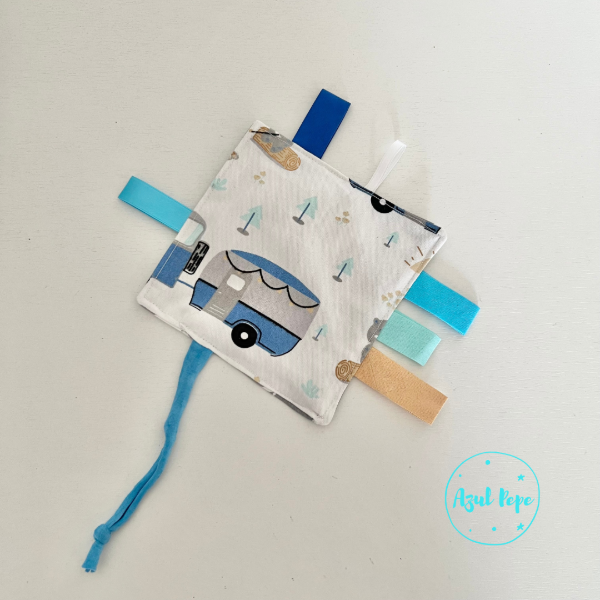 *Trapito sensorial realizado con tela 100% algodón, tiene cintas de diferentes colores y texturas, y papel crujiente en su interior.