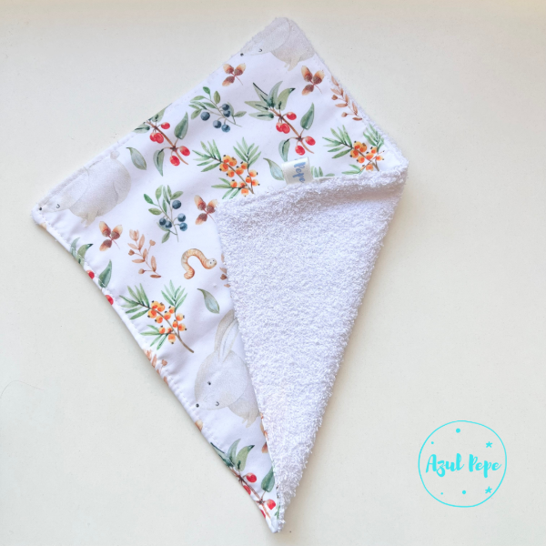 Pack de 2 babitas súper prácticas para el día a día del bebé. Están confeccionadas en gabardina o microfibra estampada, con reverso de toalla doble felpa, lo que las hace suaves, absorbentes y resistentes al uso diario.
