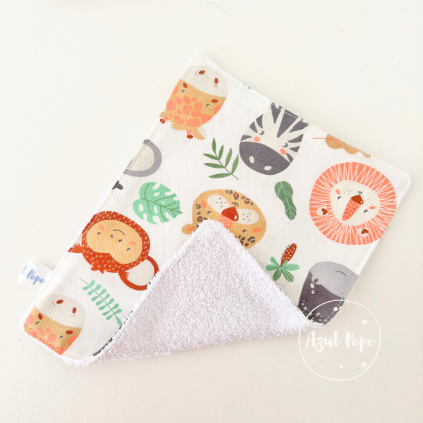 Pack de 2 babitas súper prácticas para el día a día del bebé. Están confeccionadas en gabardina o microfibra estampada, con reverso de toalla doble felpa, lo que las hace suaves, absorbentes y resistentes al uso diario.